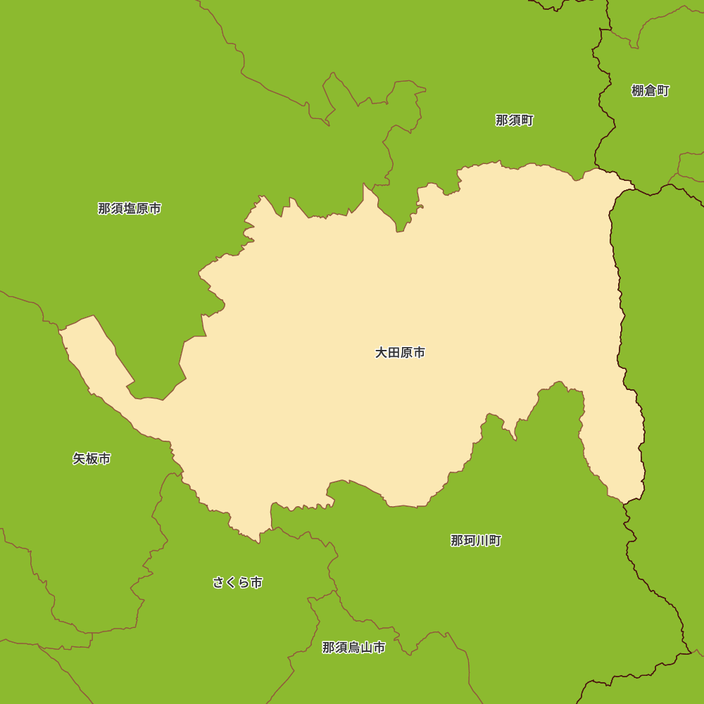 栃木県大田原市の地図を表示します。 マップ・イットは、地図素材や白地図が無料でダウンロードできるサイトです。印刷やWebなどの素材として商用利用できます。対応する地域は日本全域、八地方区分、47都道府県、政令指定都市、特別区、市町村です。