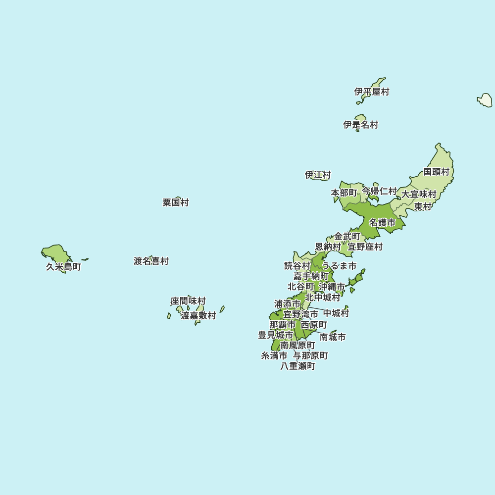沖縄県の地図を表示します。 マップ・イットは、地図素材や白地図が無料でダウンロードできるサイトです。印刷やWebなどの素材として商用利用できます。対応する地域は日本全域、八地方区分、47都道府県、政令指定都市、特別区、市町村です。