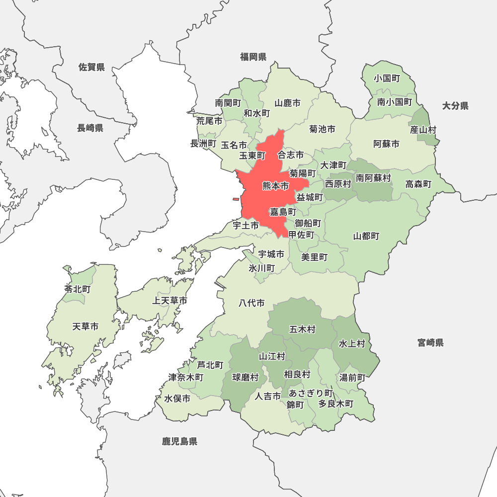 熊本県熊本市の地図を表示します。 マップ・イットは、地図素材や白地図が無料でダウンロードできるサイトです。印刷やWebなどの素材として商用利用できます。対応する地域は日本全域、八地方区分、47都道府県、政令指定都市、特別区、市町村です。