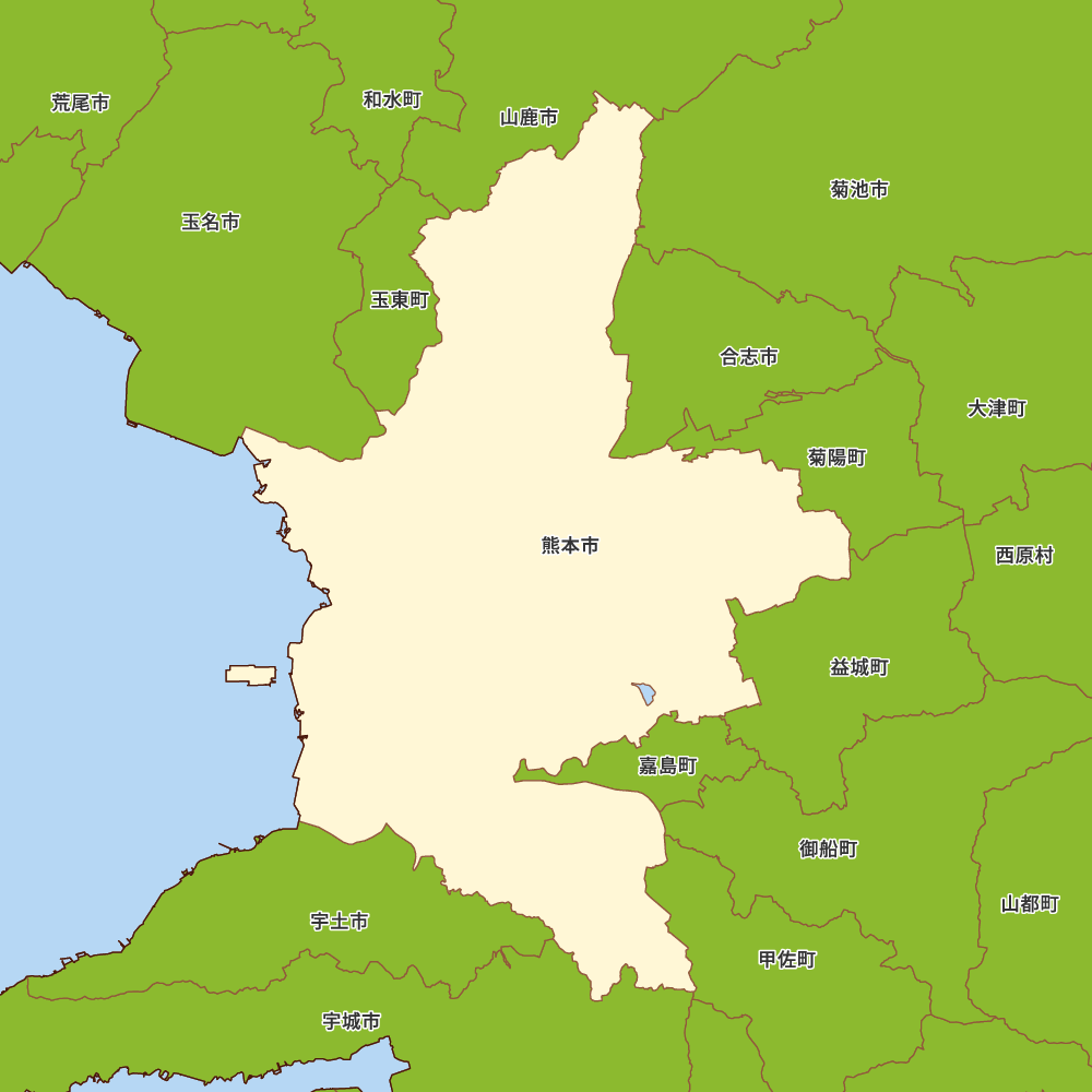 熊本県熊本市の地図を表示します。 マップ・イットは、地図素材や白地図が無料でダウンロードできるサイトです。印刷やWebなどの素材として商用利用できます。対応する地域は日本全域、八地方区分、47都道府県、政令指定都市、特別区、市町村です。