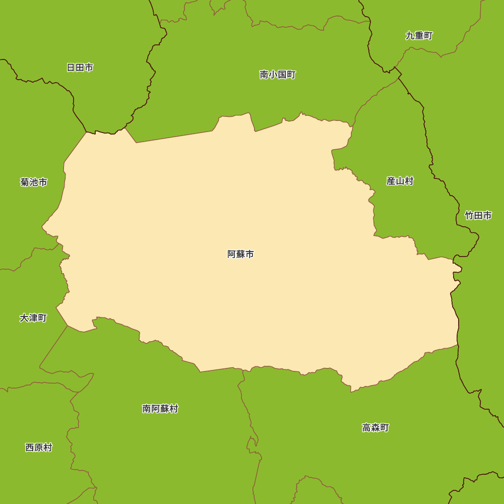熊本県阿蘇市の地図を表示します。 マップ・イットは、地図素材や白地図が無料でダウンロードできるサイトです。印刷やWebなどの素材として商用利用できます。対応する地域は日本全域、八地方区分、47都道府県、政令指定都市、特別区、市町村です。
