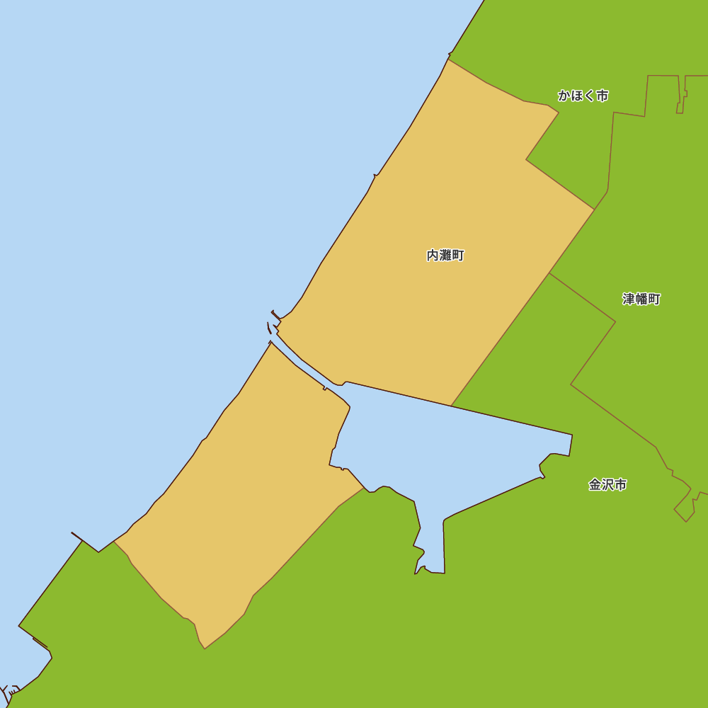 石川県河北郡内灘町の地図を表示します。 マップ・イットは、地図素材や白地図が無料でダウンロードできるサイトです。印刷やWebなどの素材として商用利用できます。対応する地域は日本全域、八地方区分、47都道府県、政令指定都市、特別区、市町村です。
