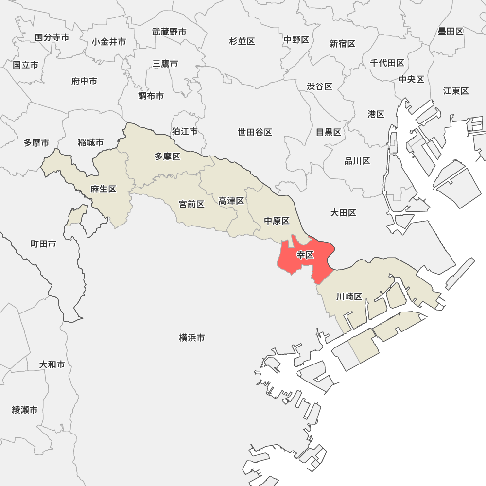 神奈川県川崎市幸区の地図を表示します。 マップ・イットは、地図素材や白地図が無料でダウンロードできるサイトです。印刷やWebなどの素材として商用利用できます。対応する地域は日本全域、八地方区分、47都道府県、政令指定都市、特別区、市町村です。