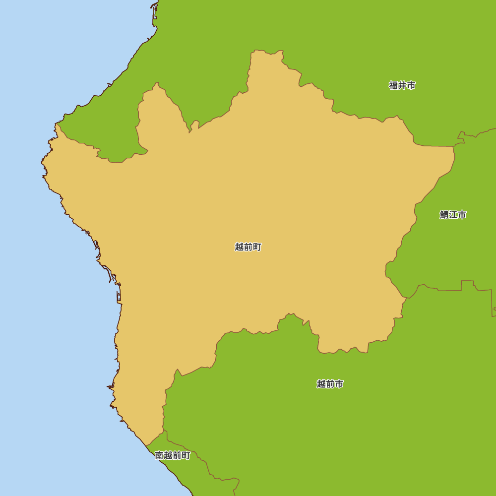 福井県丹生郡越前町の地図を表示します。 マップ・イットは、地図素材や白地図が無料でダウンロードできるサイトです。印刷やWebなどの素材として商用利用できます。対応する地域は日本全域、八地方区分、47都道府県、政令指定都市、特別区、市町村です。