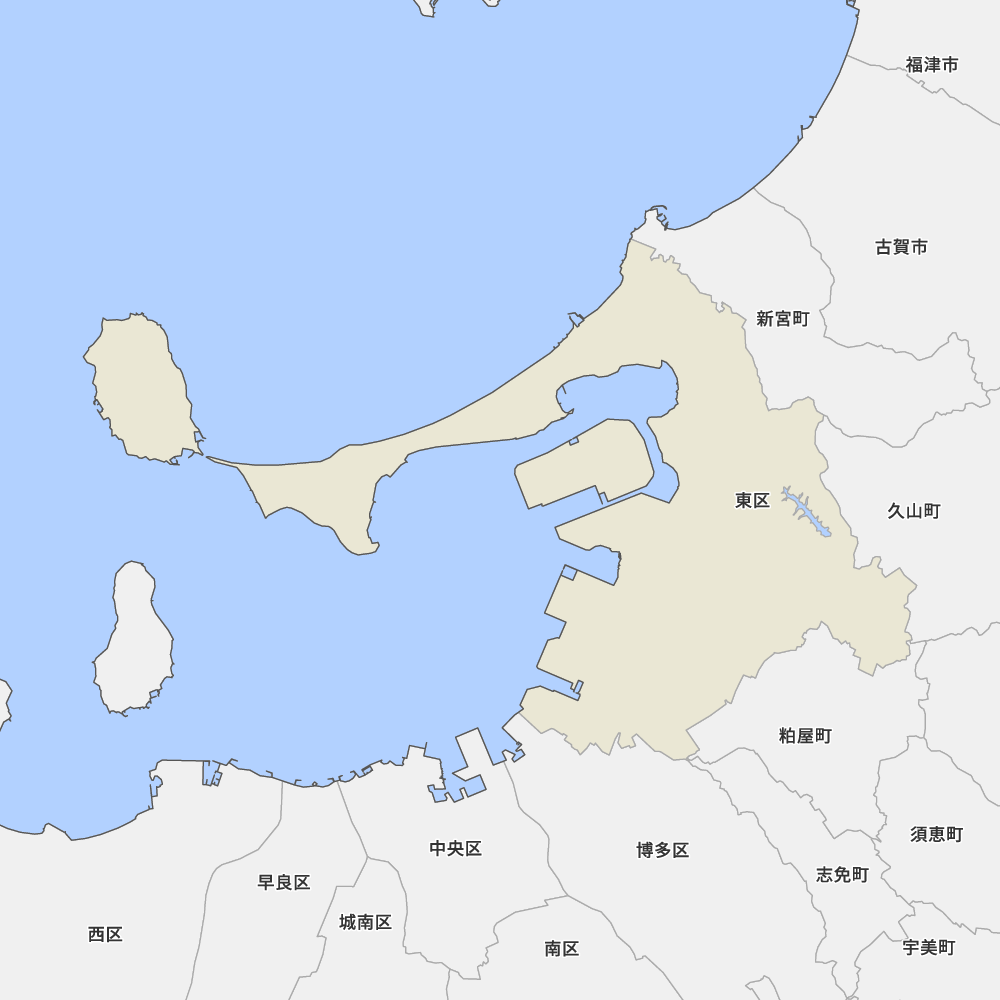 福岡県福岡市東区の地図を表示します。 マップ・イットは、地図素材や白地図が無料でダウンロードできるサイトです。印刷やWebなどの素材として商用利用できます。対応する地域は日本全域、八地方区分、47都道府県、政令指定都市、特別区、市町村です。
