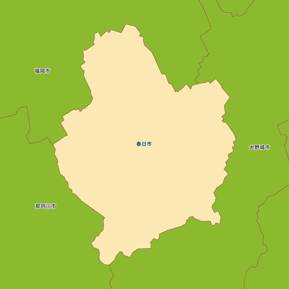 福岡県春日市の地図を表示します。 マップ・イットは、地図素材や白地図が無料でダウンロードできるサイトです。印刷やWebなどの素材として商用利用できます。対応する地域は日本全域、八地方区分、47都道府県、政令指定都市、特別区、市町村です。