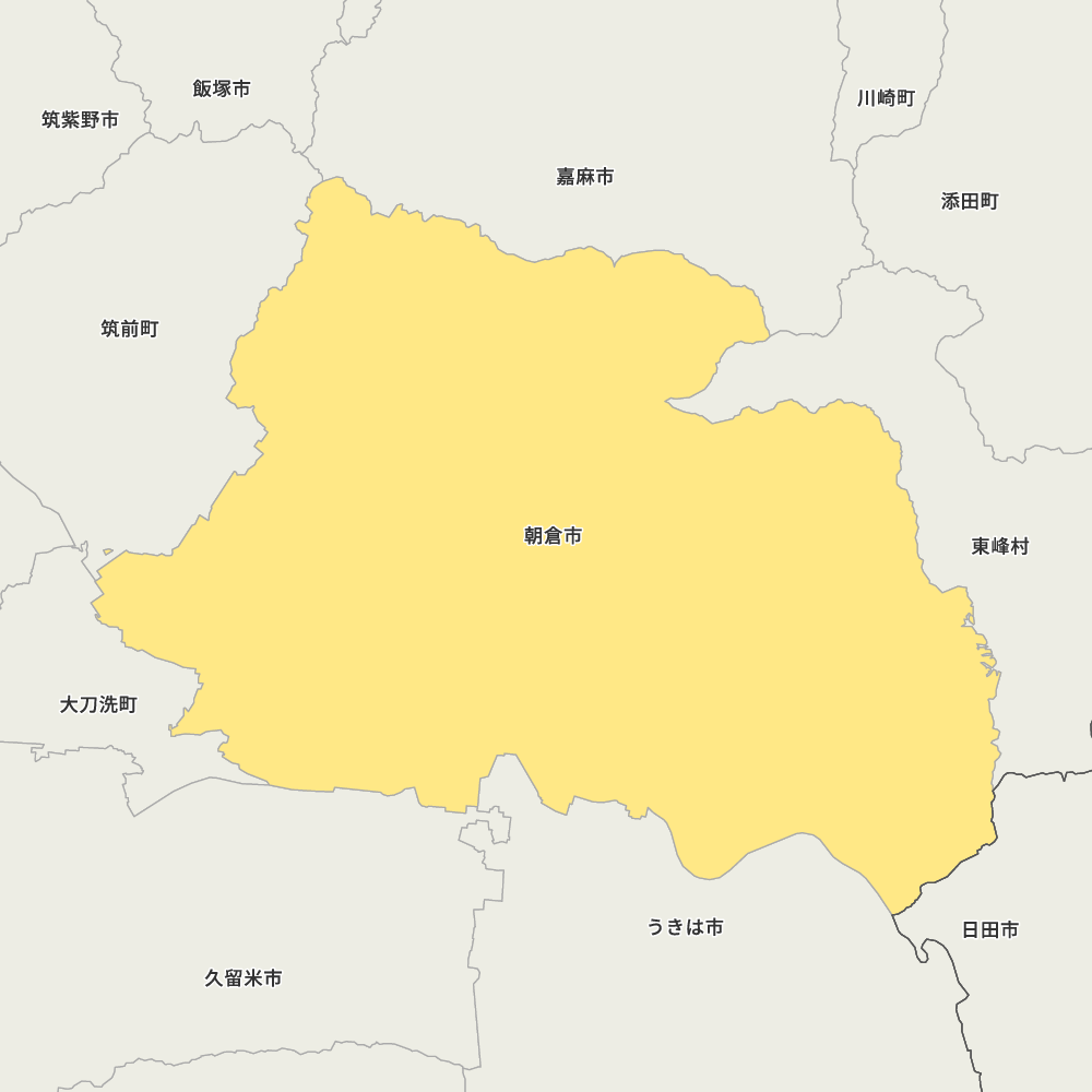 福岡県朝倉市の地図を表示します。 マップ・イットは、地図素材や白地図が無料でダウンロードできるサイトです。印刷やWebなどの素材として商用利用できます。対応する地域は日本全域、八地方区分、47都道府県、政令指定都市、特別区、市町村です。