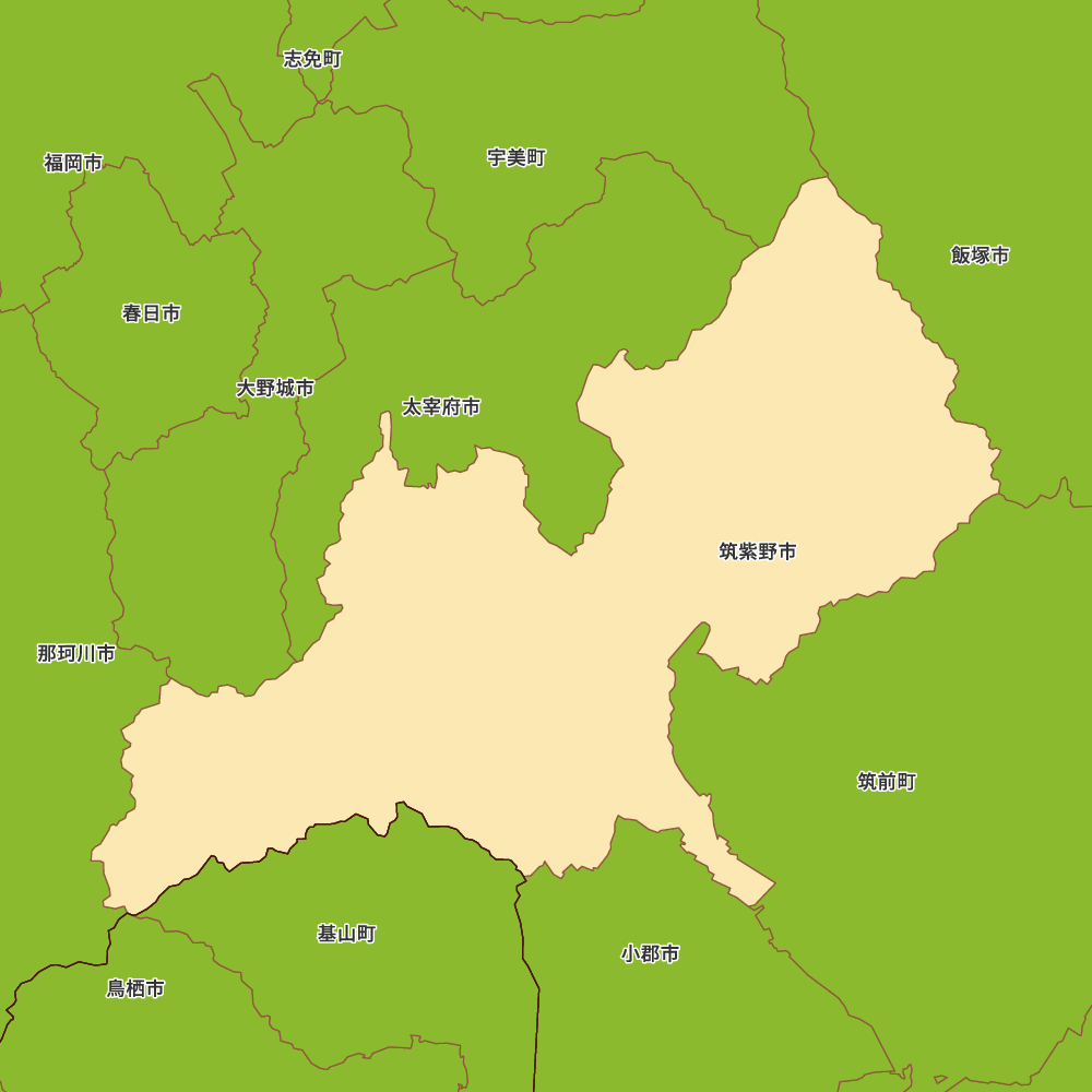 福岡県筑紫野市の地図を表示します。 マップ・イットは、地図素材や白地図が無料でダウンロードできるサイトです。印刷やWebなどの素材として商用利用できます。対応する地域は日本全域、八地方区分、47都道府県、政令指定都市、特別区、市町村です。