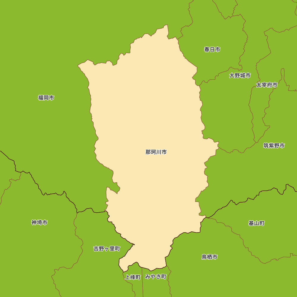 福岡県那珂川市の地図を表示します。 マップ・イットは、地図素材や白地図が無料でダウンロードできるサイトです。印刷やWebなどの素材として商用利用できます。対応する地域は日本全域、八地方区分、47都道府県、政令指定都市、特別区、市町村です。