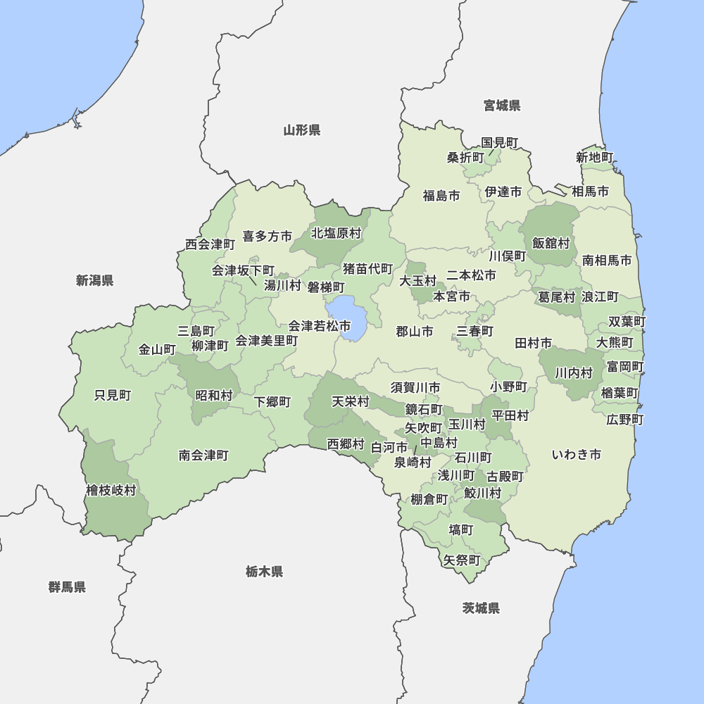 福島県の地図を表示します。 マップ・イットは、地図素材や白地図が無料でダウンロードできるサイトです。印刷やWebなどの素材として商用利用できます。対応する地域は日本全域、八地方区分、47都道府県、政令指定都市、特別区、市町村です。