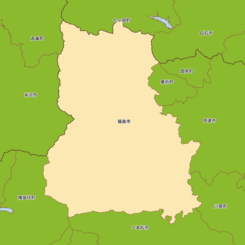 福島県福島市の地図を表示します。 マップ・イットは、地図素材や白地図が無料でダウンロードできるサイトです。印刷やWebなどの素材として商用利用できます。対応する地域は日本全域、八地方区分、47都道府県、政令指定都市、特別区、市町村です。