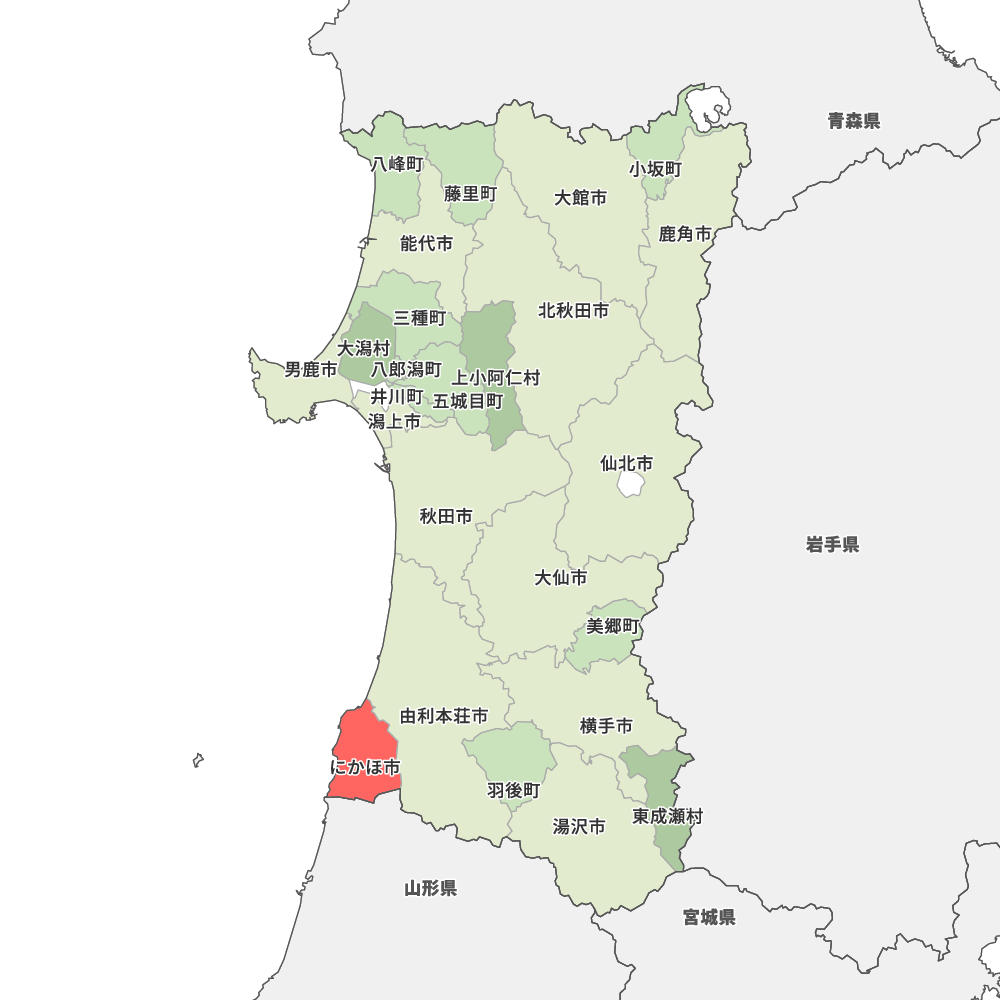 秋田県にかほ市の地図を表示します。 マップ・イットは、地図素材や白地図が無料でダウンロードできるサイトです。印刷やWebなどの素材として商用利用できます。対応する地域は日本全域、八地方区分、47都道府県、政令指定都市、特別区、市町村です。