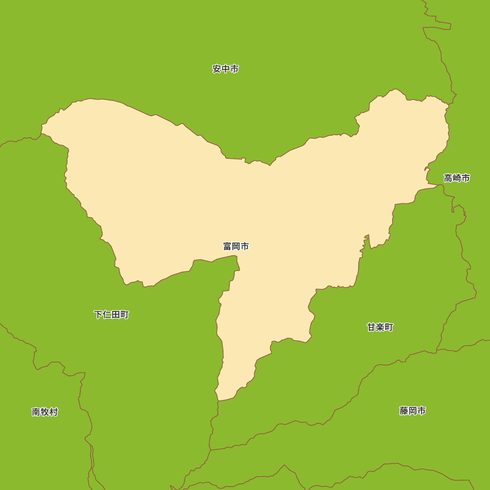 群馬県富岡市の地図を表示します。 マップ・イットは、地図素材や白地図が無料でダウンロードできるサイトです。印刷やWebなどの素材として商用利用できます。対応する地域は日本全域、八地方区分、47都道府県、政令指定都市、特別区、市町村です。