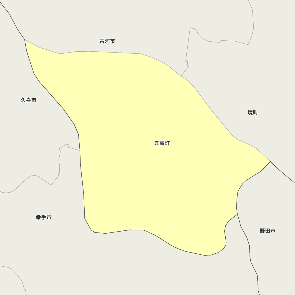 茨城県猿島郡五霞町の地図を表示します。 マップ・イットは、地図素材や白地図が無料でダウンロードできるサイトです。印刷やWebなどの素材として商用利用できます。対応する地域は日本全域、八地方区分、47都道府県、政令指定都市、特別区、市町村です。