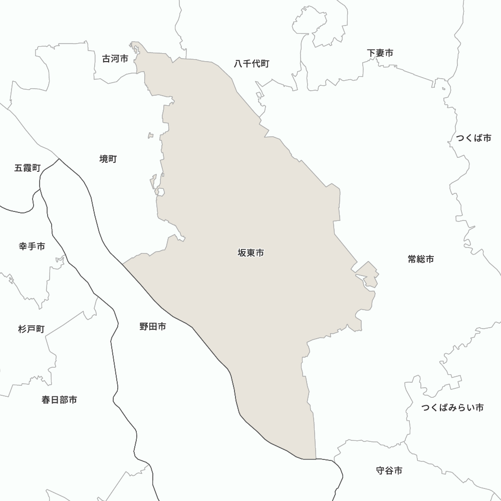 茨城県坂東市の地図を表示します。 マップ・イットは、地図素材や白地図が無料でダウンロードできるサイトです。印刷やWebなどの素材として商用利用できます。対応する地域は日本全域、八地方区分、47都道府県、政令指定都市、特別区、市町村です。