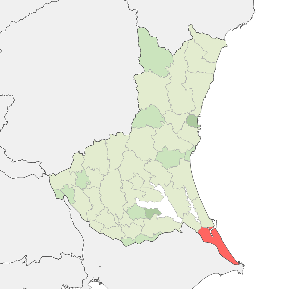イラストレータで編集可能なベクトルデータを提供します。デザインへの利用に最適です。各市町村を色分けすることでオリジナルの地図チャートが作成できます。
