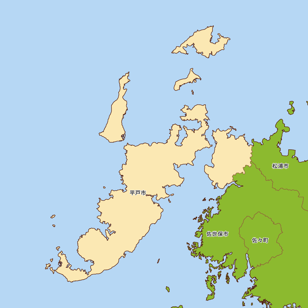 長崎県平戸市の地図を表示します。 マップ・イットは、地図素材や白地図が無料でダウンロードできるサイトです。印刷やWebなどの素材として商用利用できます。対応する地域は日本全域、八地方区分、47都道府県、政令指定都市、特別区、市町村です。