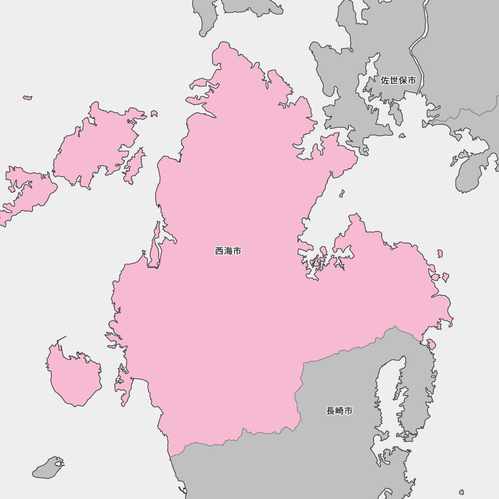 長崎県西海市の地図を表示します。 マップ・イットは、地図素材や白地図が無料でダウンロードできるサイトです。印刷やWebなどの素材として商用利用できます。対応する地域は日本全域、八地方区分、47都道府県、政令指定都市、特別区、市町村です。
