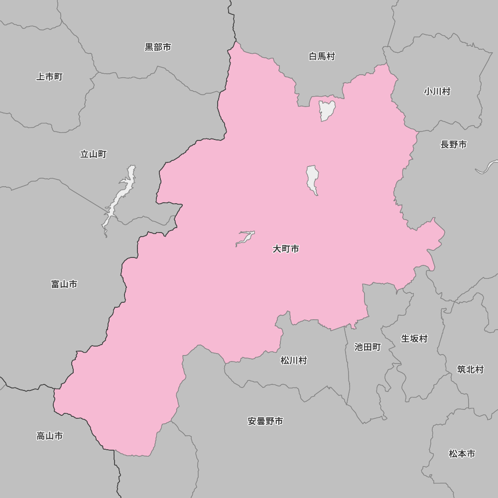 長野県大町市の地図を表示します。 マップ・イットは、地図素材や白地図が無料でダウンロードできるサイトです。印刷やWebなどの素材として商用利用できます。対応する地域は日本全域、八地方区分、47都道府県、政令指定都市、特別区、市町村です。