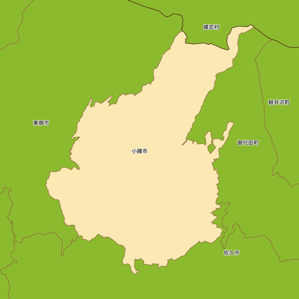 長野県小諸市の地図を表示します。 マップ・イットは、地図素材や白地図が無料でダウンロードできるサイトです。印刷やWebなどの素材として商用利用できます。対応する地域は日本全域、八地方区分、47都道府県、政令指定都市、特別区、市町村です。