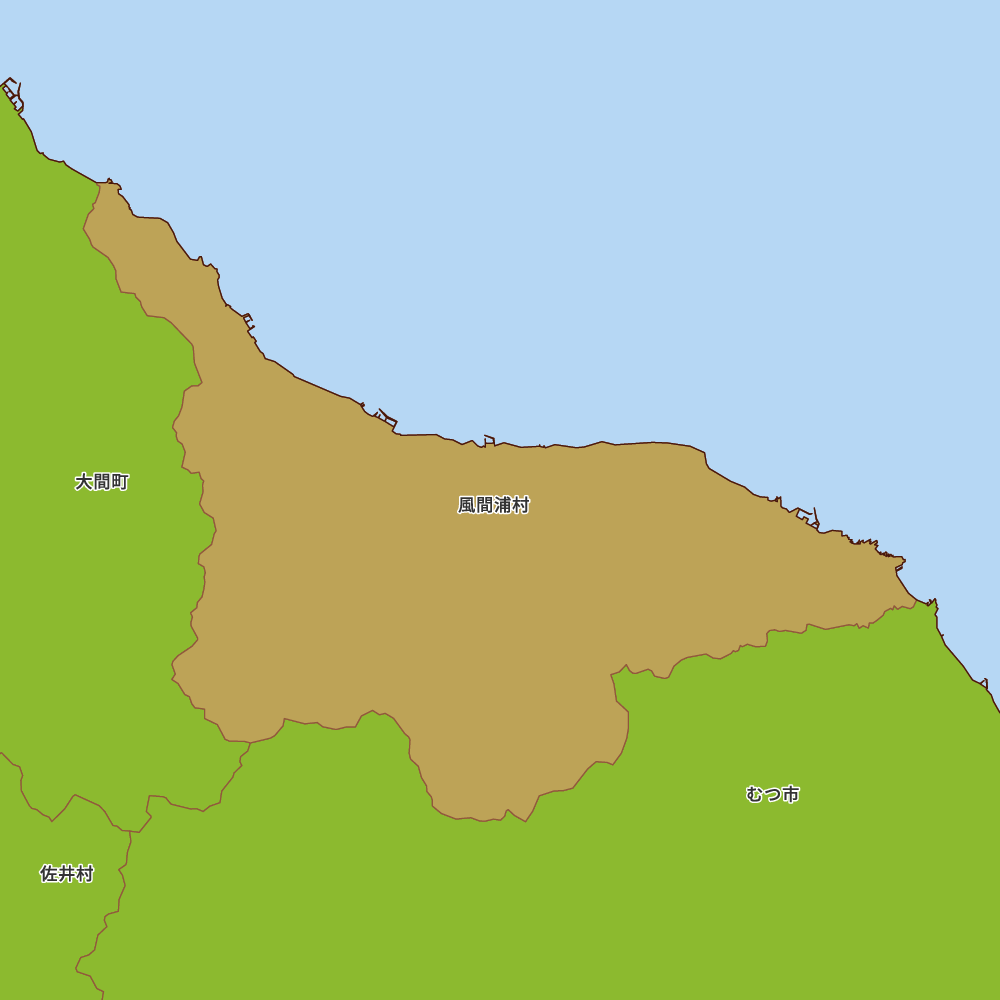 風間浦村は、下北半島北部、津軽海峡に面した本州最北部の村である。 村面積の大部分を恐山山地を構成する山地にて占める。
