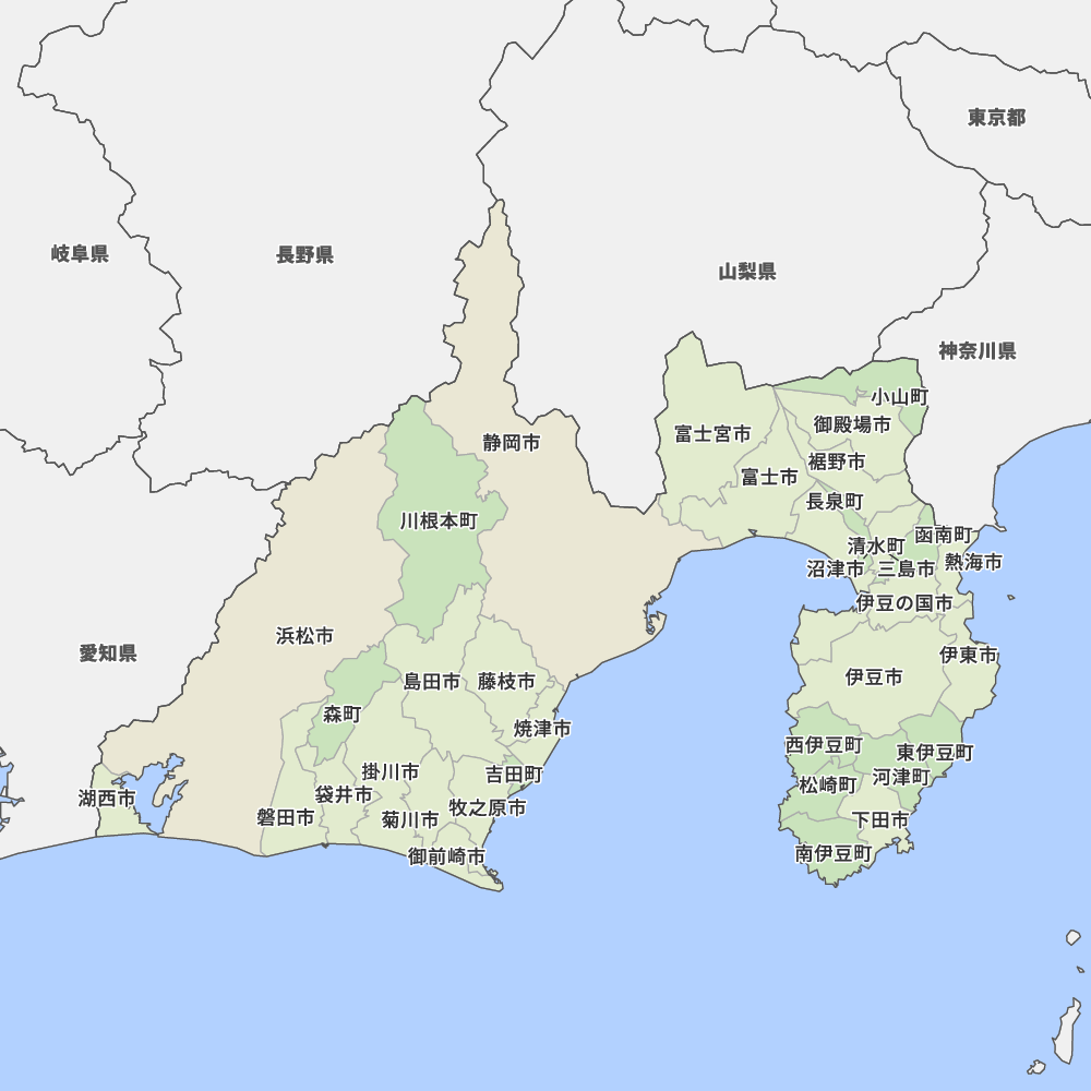 静岡県の地図を表示します。 マップ・イットは、地図素材や白地図が無料でダウンロードできるサイトです。印刷やWebなどの素材として商用利用できます。対応する地域は日本全域、八地方区分、47都道府県、政令指定都市、特別区、市町村です。