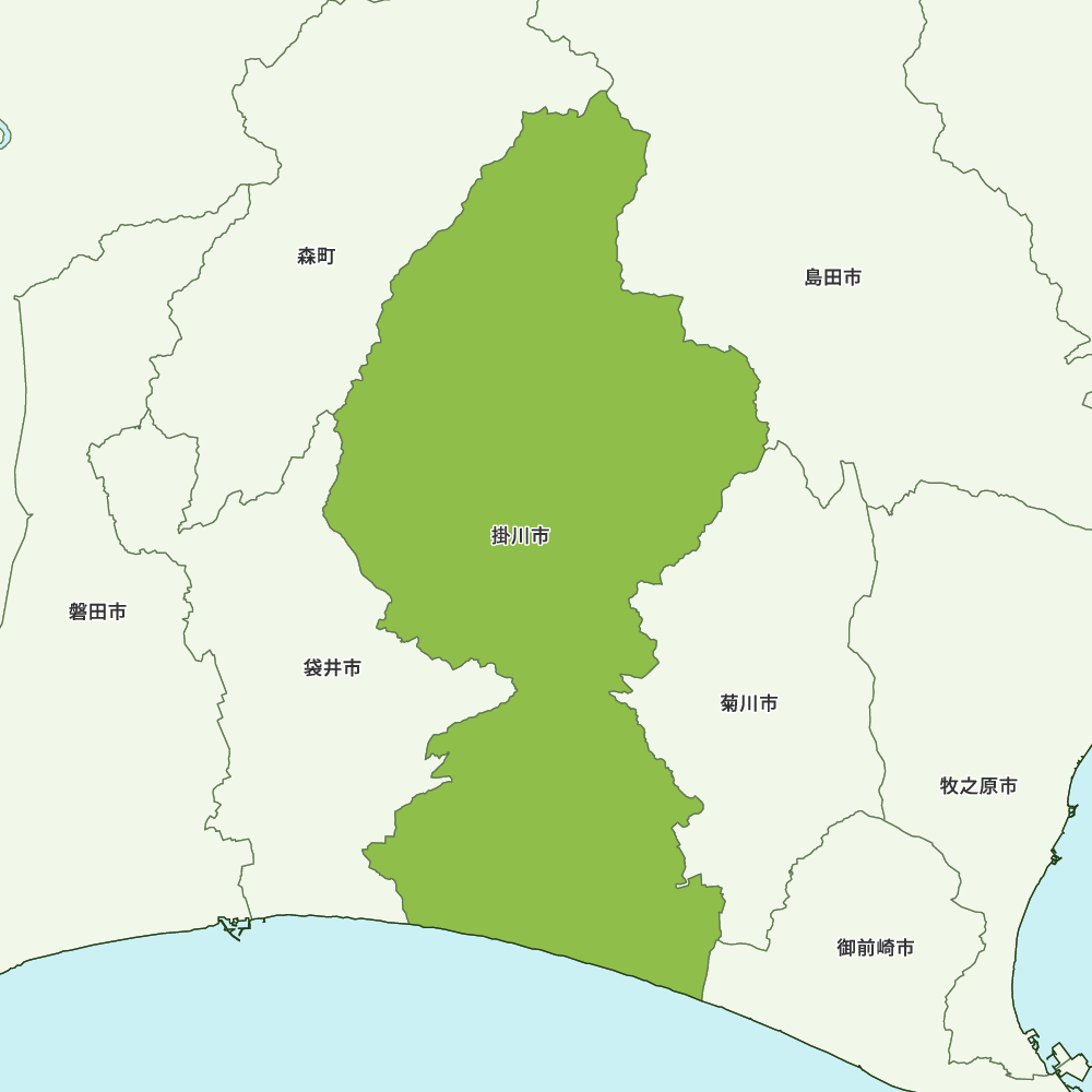 静岡県掛川市の地図を表示します。 マップ・イットは、地図素材や白地図が無料でダウンロードできるサイトです。印刷やWebなどの素材として商用利用できます。対応する地域は日本全域、八地方区分、47都道府県、政令指定都市、特別区、市町村です。