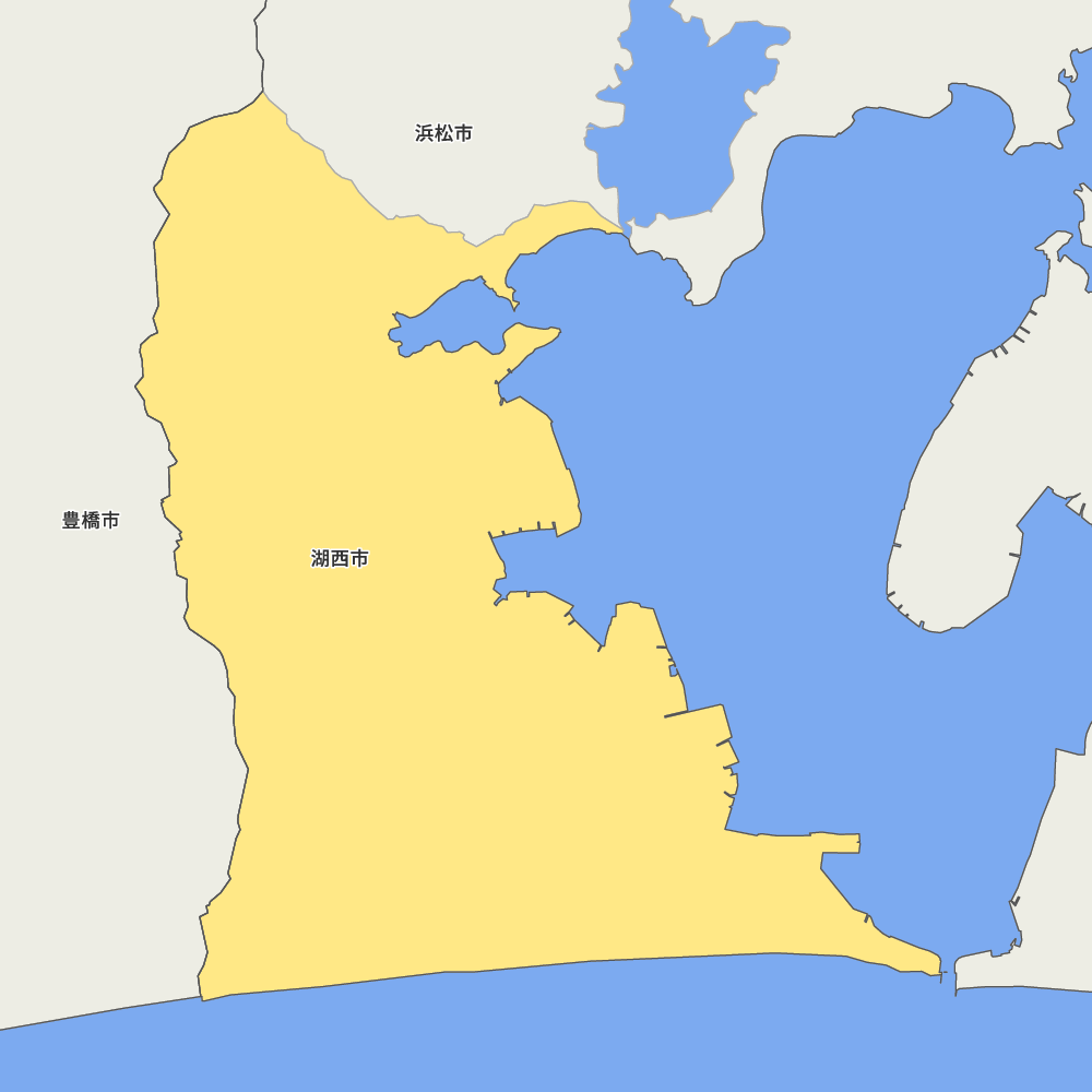 静岡県湖西市の地図を表示します。 マップ・イットは、地図素材や白地図が無料でダウンロードできるサイトです。印刷やWebなどの素材として商用利用できます。対応する地域は日本全域、八地方区分、47都道府県、政令指定都市、特別区、市町村です。