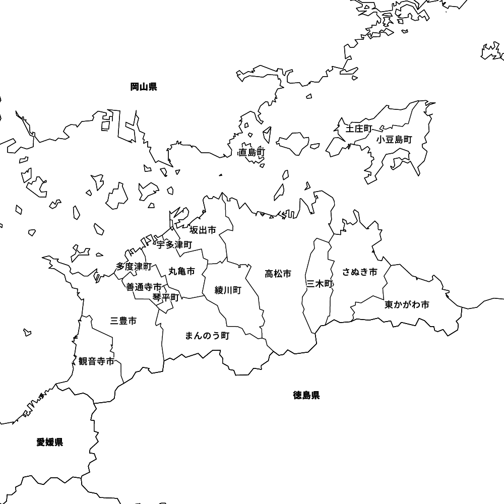 香川県の地図を表示します。 マップ・イットは、地図素材や白地図が無料でダウンロードできるサイトです。印刷やWebなどの素材として商用利用できます。対応する地域は日本全域、八地方区分、47都道府県、政令指定都市、特別区、市町村です。