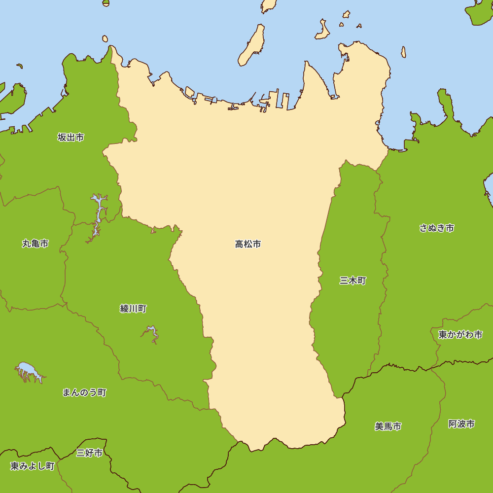 香川県高松市の地図を表示します。 マップ・イットは、地図素材や白地図が無料でダウンロードできるサイトです。印刷やWebなどの素材として商用利用できます。対応する地域は日本全域、八地方区分、47都道府県、政令指定都市、特別区、市町村です。