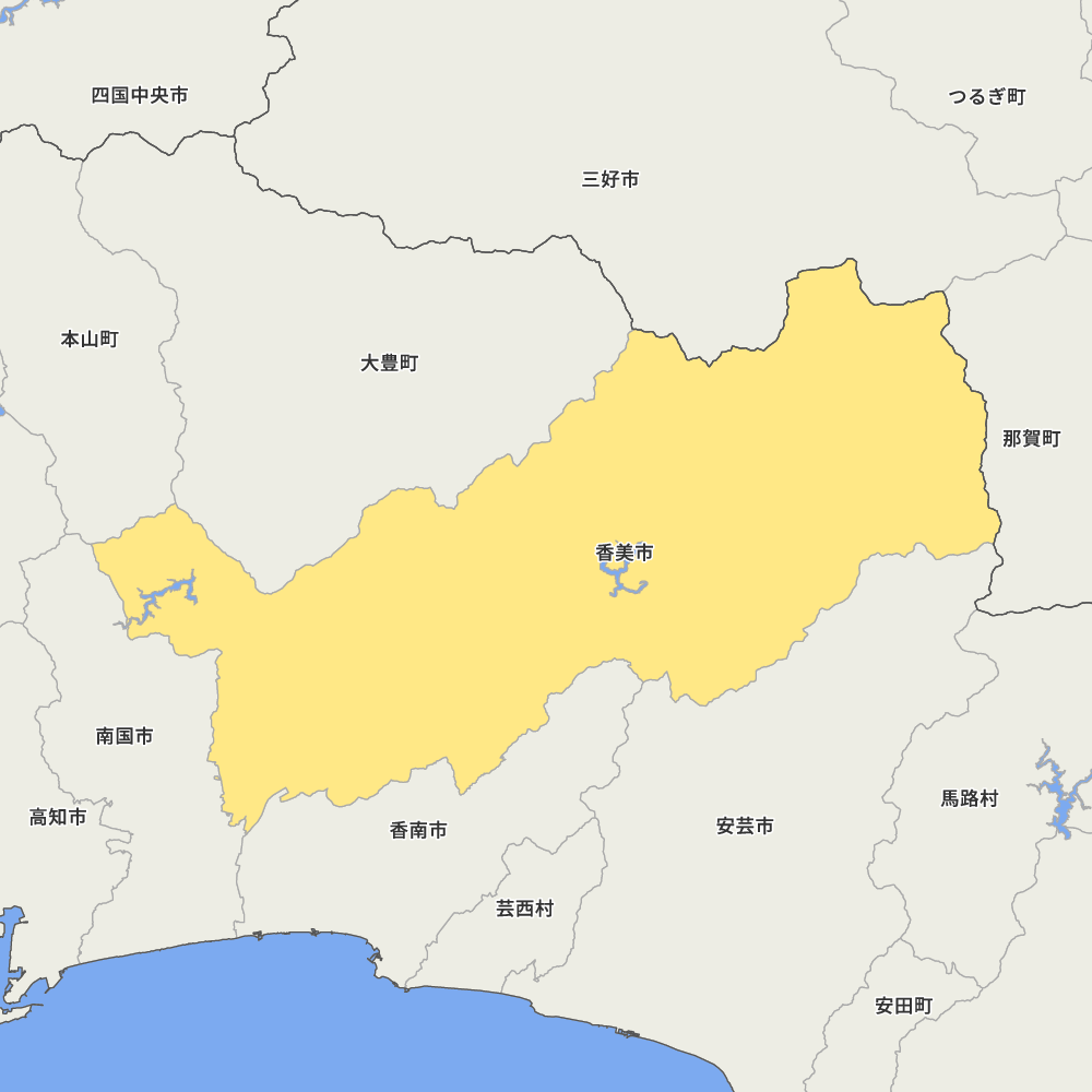 高知県香美市の地図を表示します。 マップ・イットは、地図素材や白地図が無料でダウンロードできるサイトです。印刷やWebなどの素材として商用利用できます。対応する地域は日本全域、八地方区分、47都道府県、政令指定都市、特別区、市町村です。