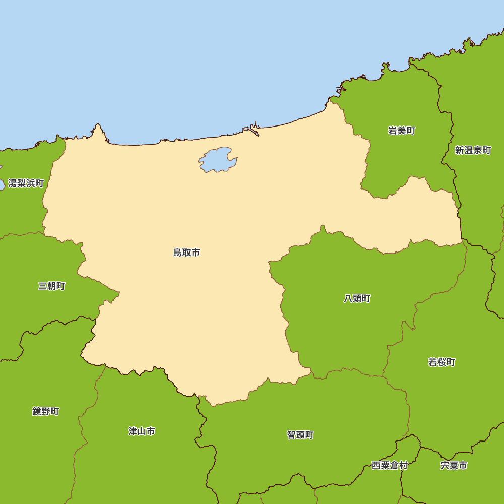 鳥取県鳥取市の地図を表示します。 マップ・イットは、地図素材や白地図が無料でダウンロードできるサイトです。印刷やWebなどの素材として商用利用できます。対応する地域は日本全域、八地方区分、47都道府県、政令指定都市、特別区、市町村です。