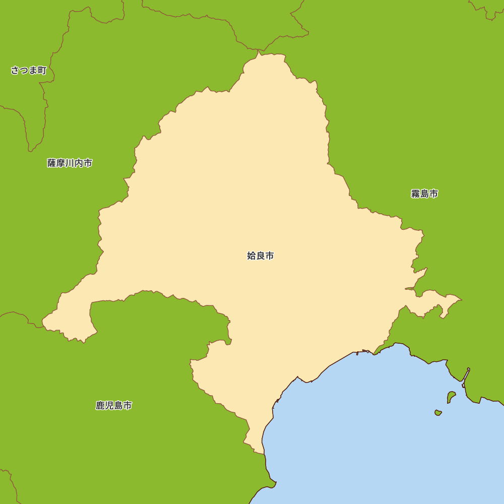 鹿児島県姶良市の地図を表示します。 マップ・イットは、地図素材や白地図が無料でダウンロードできるサイトです。印刷やWebなどの素材として商用利用できます。対応する地域は日本全域、八地方区分、47都道府県、政令指定都市、特別区、市町村です。