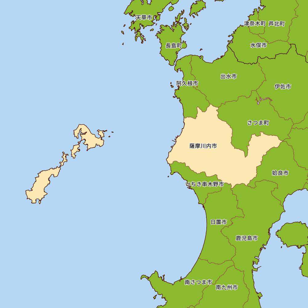 鹿児島県薩摩川内市の地図を表示します。 マップ・イットは、地図素材や白地図が無料でダウンロードできるサイトです。印刷やWebなどの素材として商用利用できます。対応する地域は日本全域、八地方区分、47都道府県、政令指定都市、特別区、市町村です。