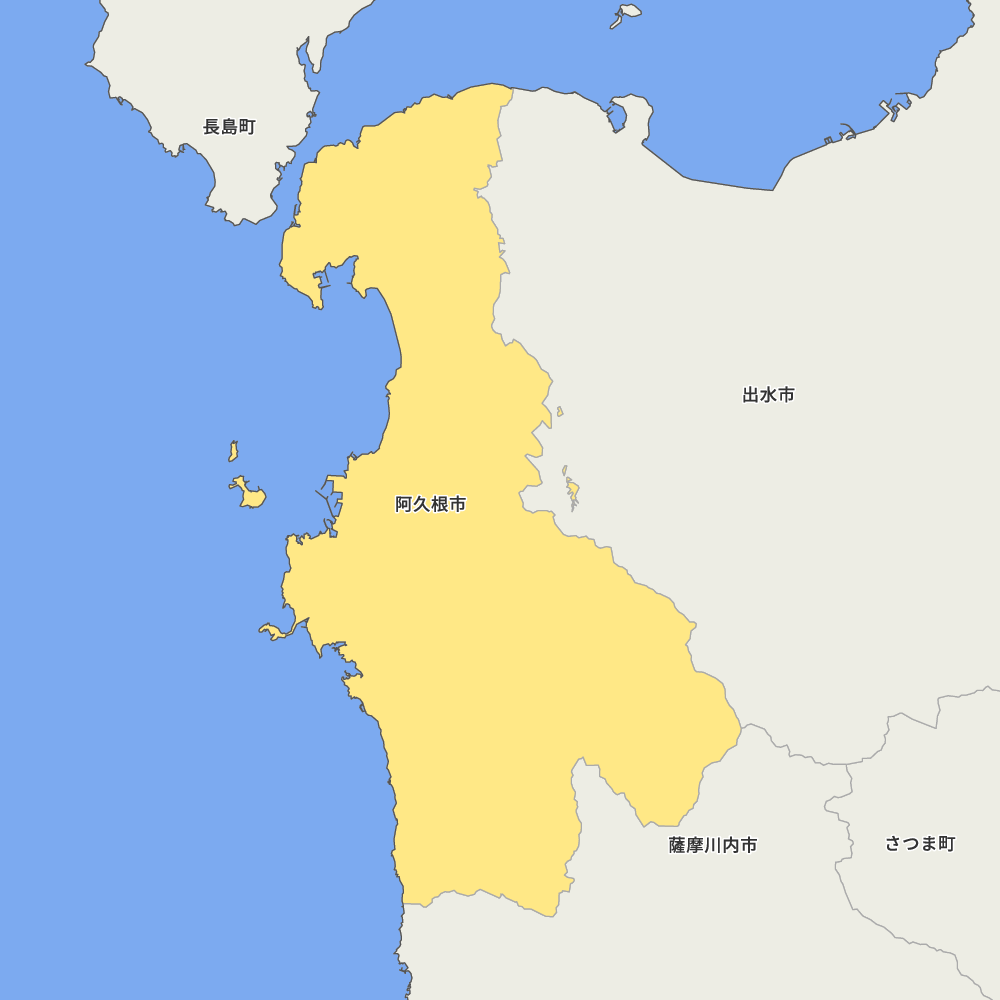 鹿児島県阿久根市の地図を表示します。 マップ・イットは、地図素材や白地図が無料でダウンロードできるサイトです。印刷やWebなどの素材として商用利用できます。対応する地域は日本全域、八地方区分、47都道府県、政令指定都市、特別区、市町村です。
