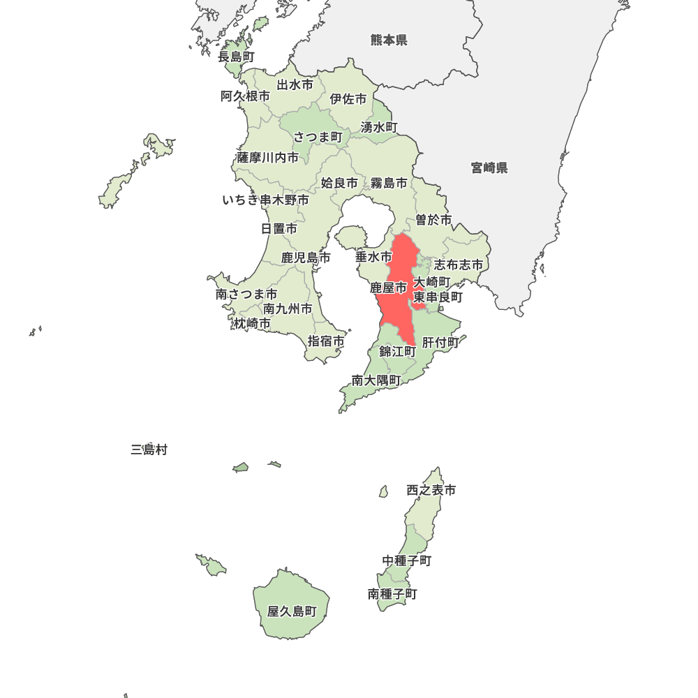 鹿児島県鹿屋市の地図を表示します。 マップ・イットは、地図素材や白地図が無料でダウンロードできるサイトです。印刷やWebなどの素材として商用利用できます。対応する地域は日本全域、八地方区分、47都道府県、政令指定都市、特別区、市町村です。