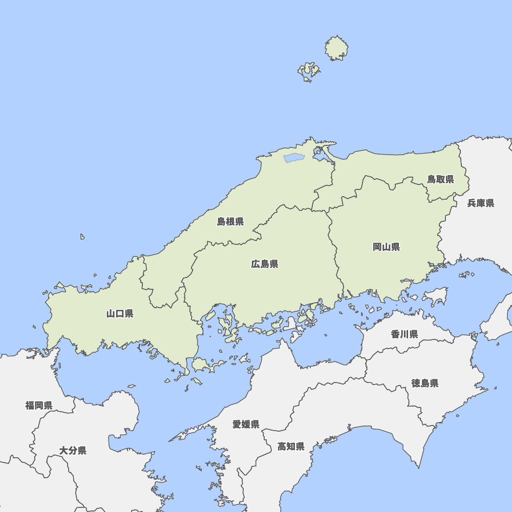 中国地方の地図を表示します。 マップ・イットは、地図素材や白地図が無料でダウンロードできるサイトです。印刷やWebなどの素材として商用利用できます。対応する地域は日本全域、八地方区分、47都道府県、政令指定都市、特別区、市町村です。