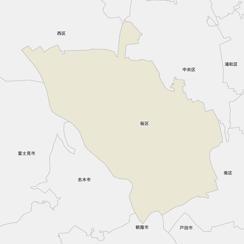 埼玉県さいたま市桜区の地図を表示します。 マップ・イットは、地図素材や白地図が無料でダウンロードできるサイトです。印刷やWebなどの素材として商用利用できます。対応する地域は日本全域、八地方区分、47都道府県、政令指定都市、特別区、市町村です。