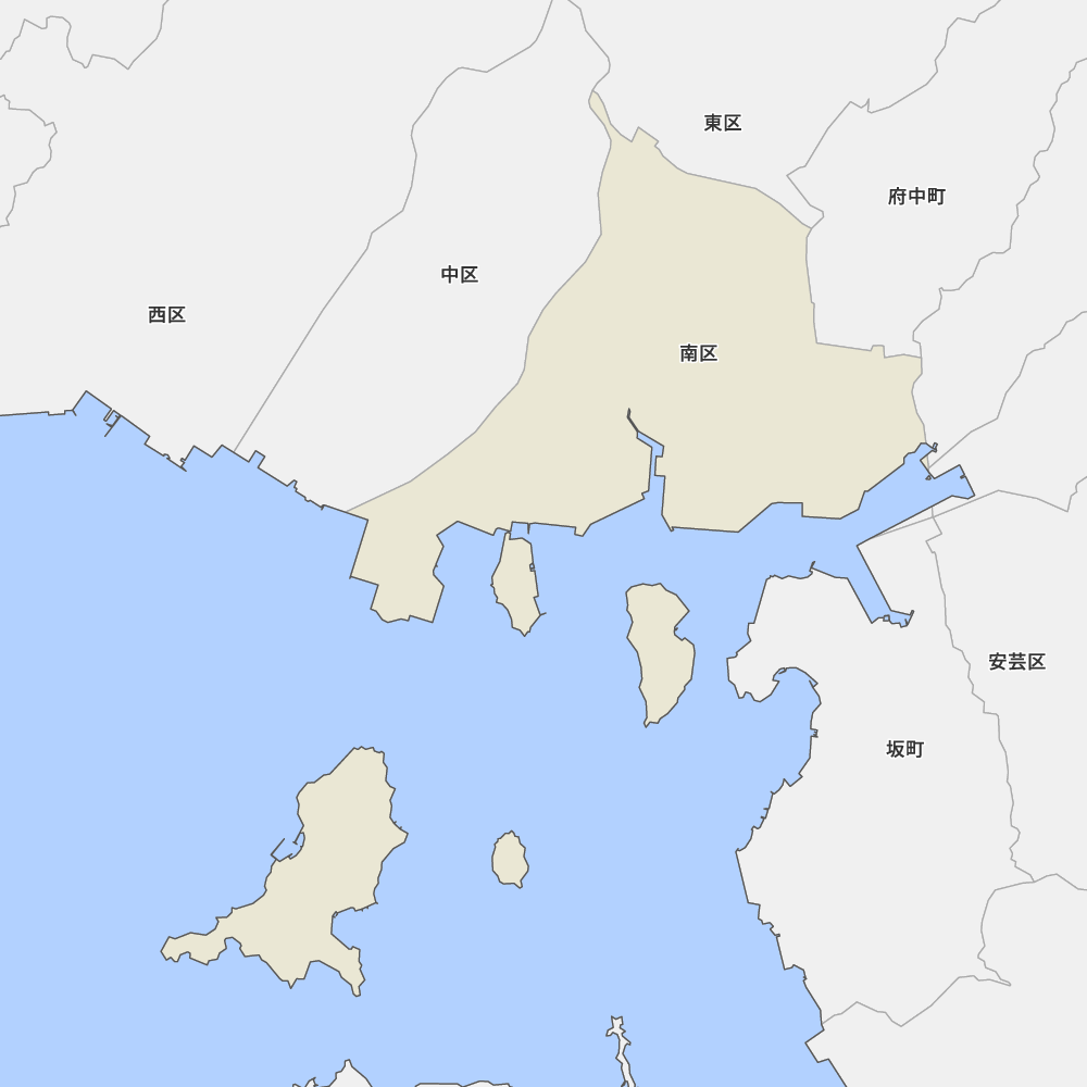 広島県広島市南区の地図を表示します。 マップ・イットは、地図素材や白地図が無料でダウンロードできるサイトです。印刷やWebなどの素材として商用利用できます。対応する地域は日本全域、八地方区分、47都道府県、政令指定都市、特別区、市町村です。
