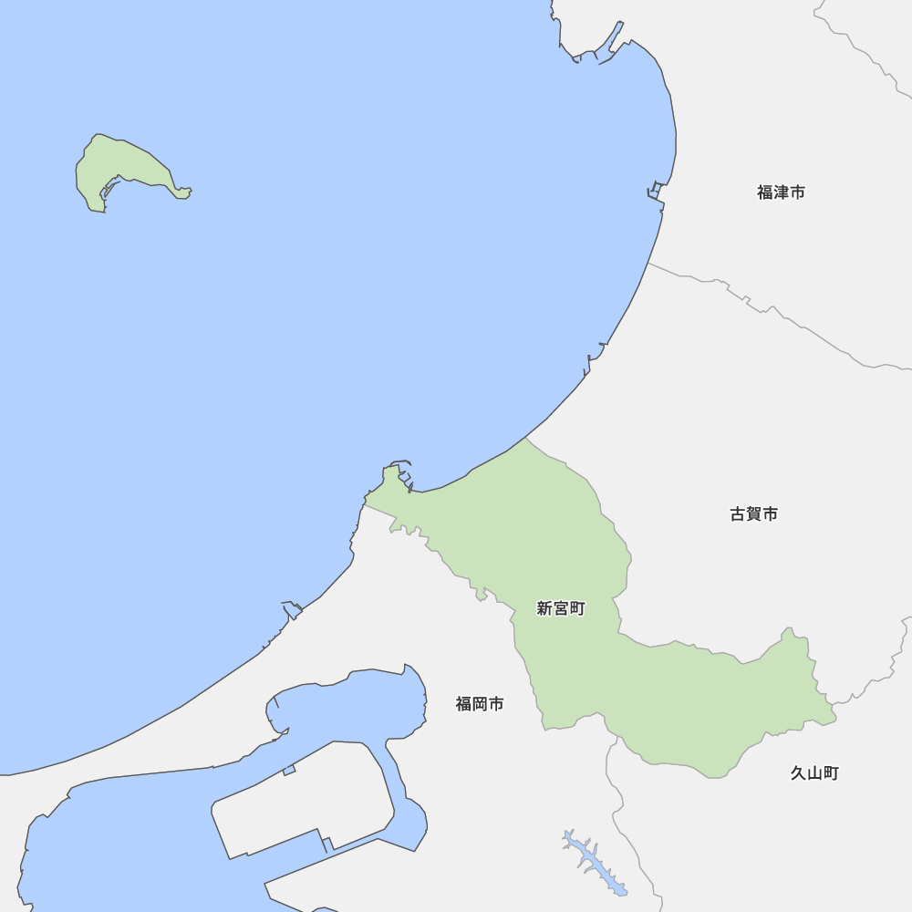福岡県糟屋郡新宮町の地図を表示します。 マップ・イットは、地図素材や白地図が無料でダウンロードできるサイトです。印刷やWebなどの素材として商用利用できます。対応する地域は日本全域、八地方区分、47都道府県、政令指定都市、特別区、市町村です。