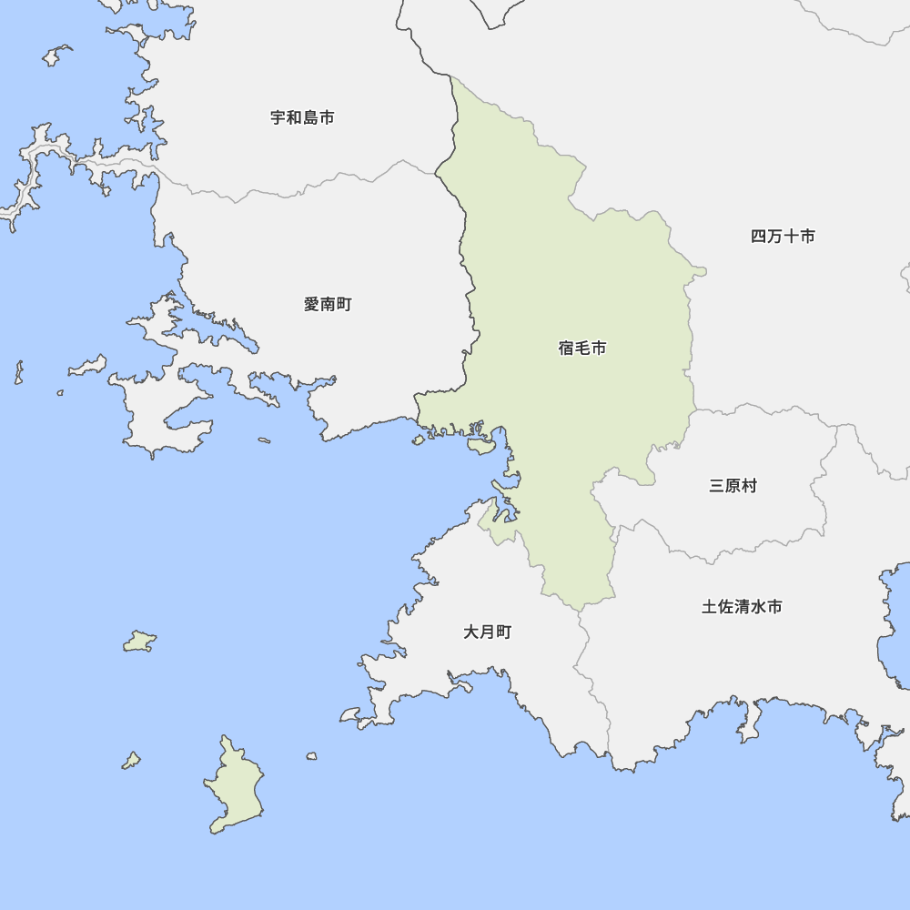 高知県宿毛市の地図を表示します。 マップ・イットは、地図素材や白地図が無料でダウンロードできるサイトです。印刷やWebなどの素材として商用利用できます。対応する地域は日本全域、八地方区分、47都道府県、政令指定都市、特別区、市町村です。