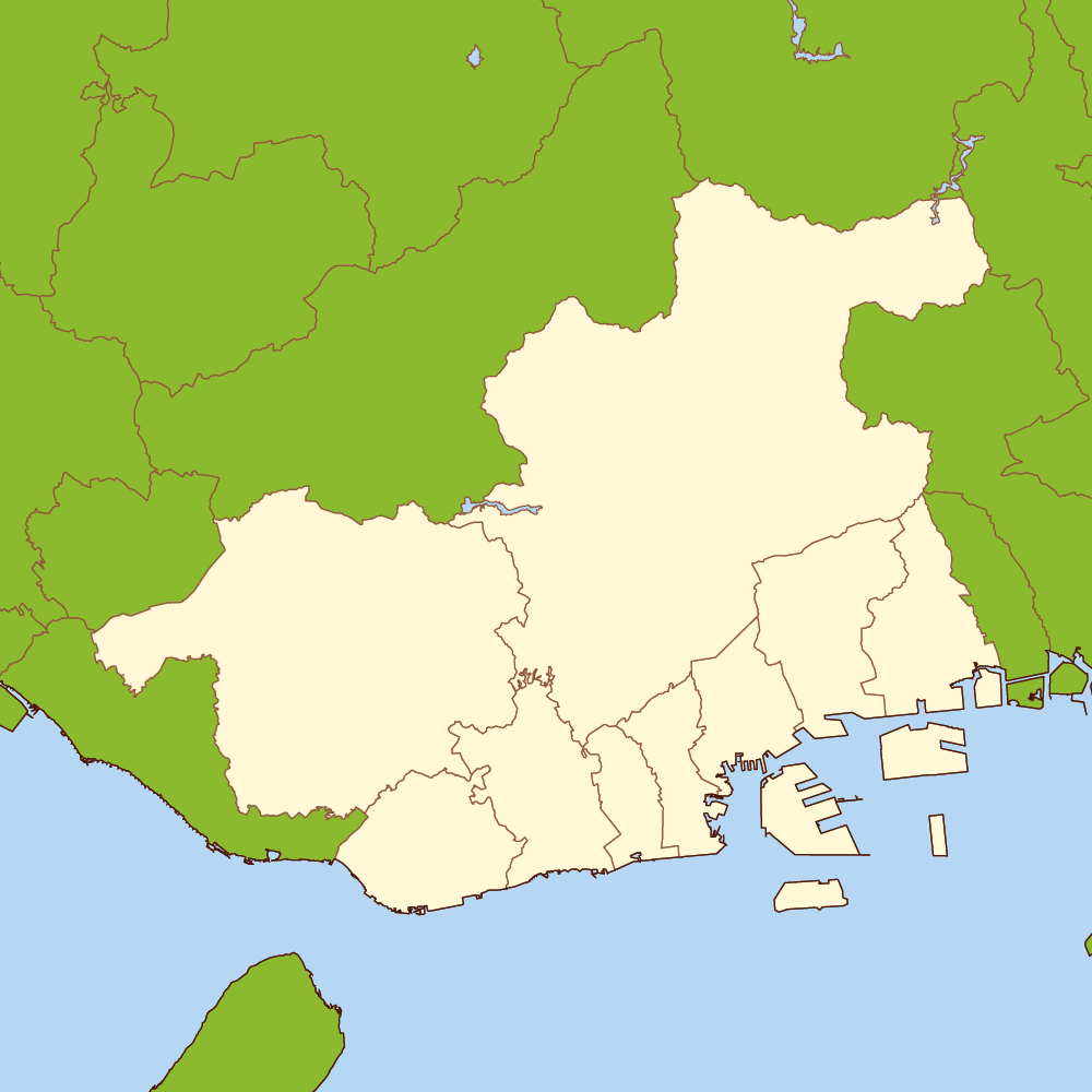 イラストレータで編集可能なベクトルデータを提供します。デザインへの利用に最適です。各市町村を色分けすることでオリジナルの地図チャートが作成できます。