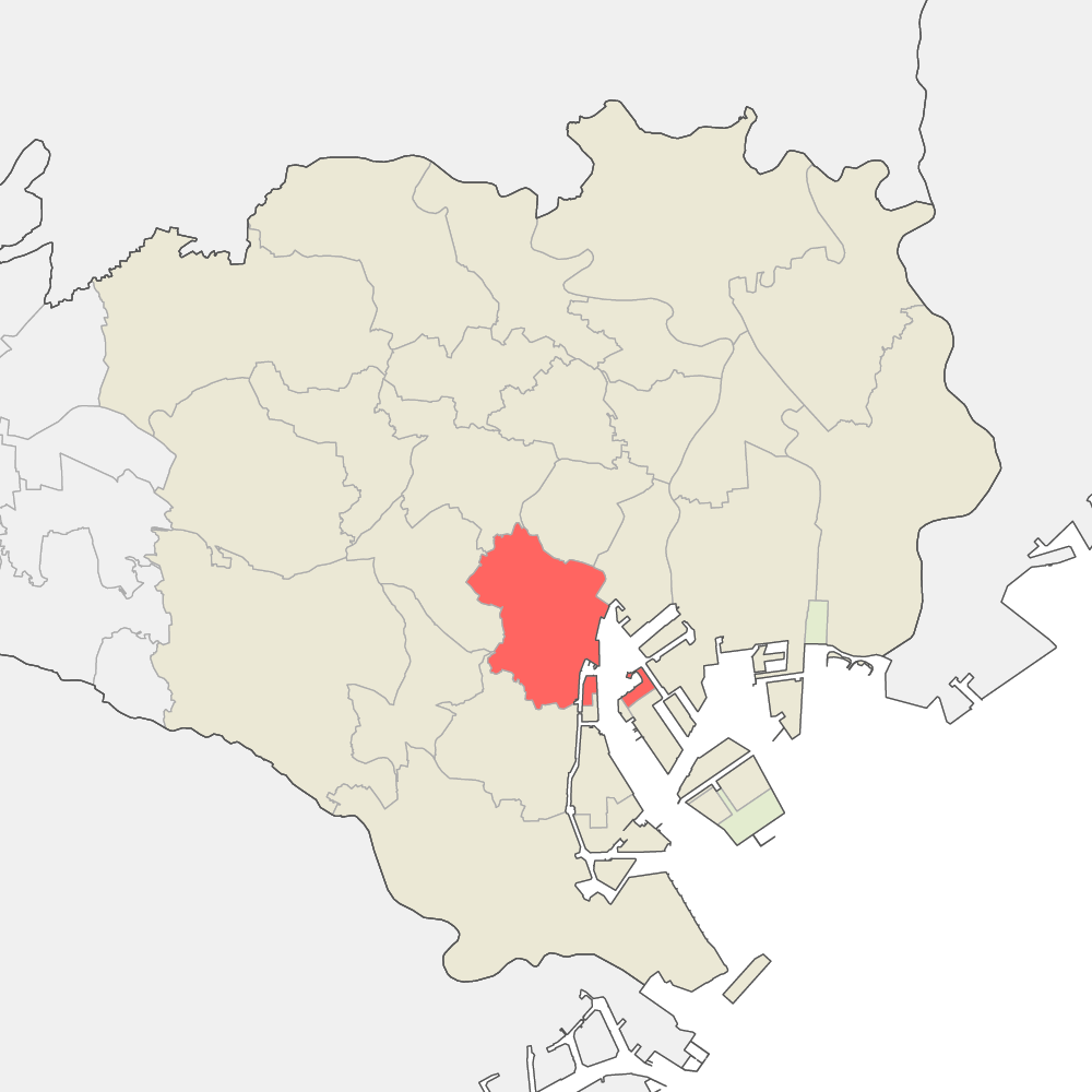 Minato (港区 Minato-ku) is a special ward in Tokyo, Japan. It is also called Minato City in English. It was formed in 1947 as a merger of Akasaka, Azabu and Shiba wards following Tokyo City's transformation into Tokyo Metropolis. The modern Minato ward exhibits the contrasting Shitamachi and Yamanote geographical and cultural division. The Shinbashi neighborhood in the ward's northeastern corner is attached to the core of Shitamachi, the original commercial center of Edo-Tokyo. On the other hand, the Azabu and Akasaka areas are typically representative Yamanote districts.